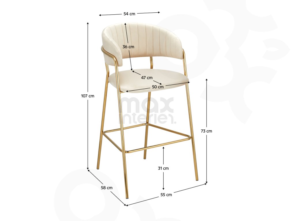 Přidejte do svého domova nebo baru špetku elegance s barovou židlí DASMIN TYP 2 v nadčasové kombinaci béžové látky Velvet a zlatého chromu. Tato designová židle spojuje komfort, kvalitu a styl v jednom, ideální pro moderní kuchyně, bary či jídelní kouty.