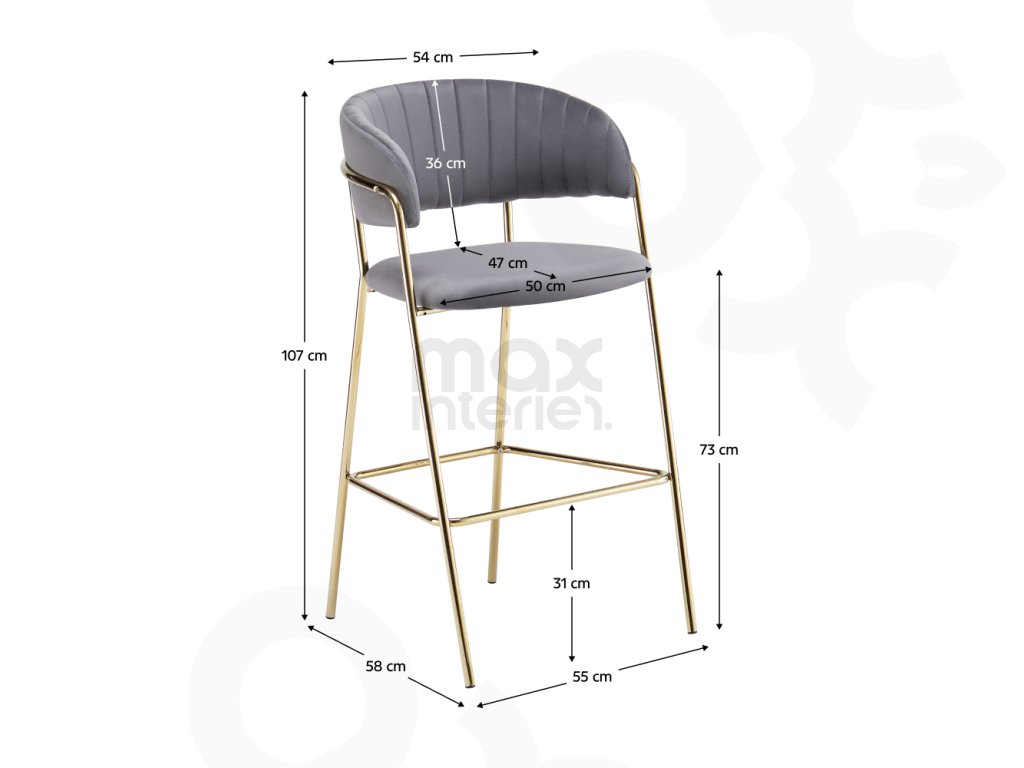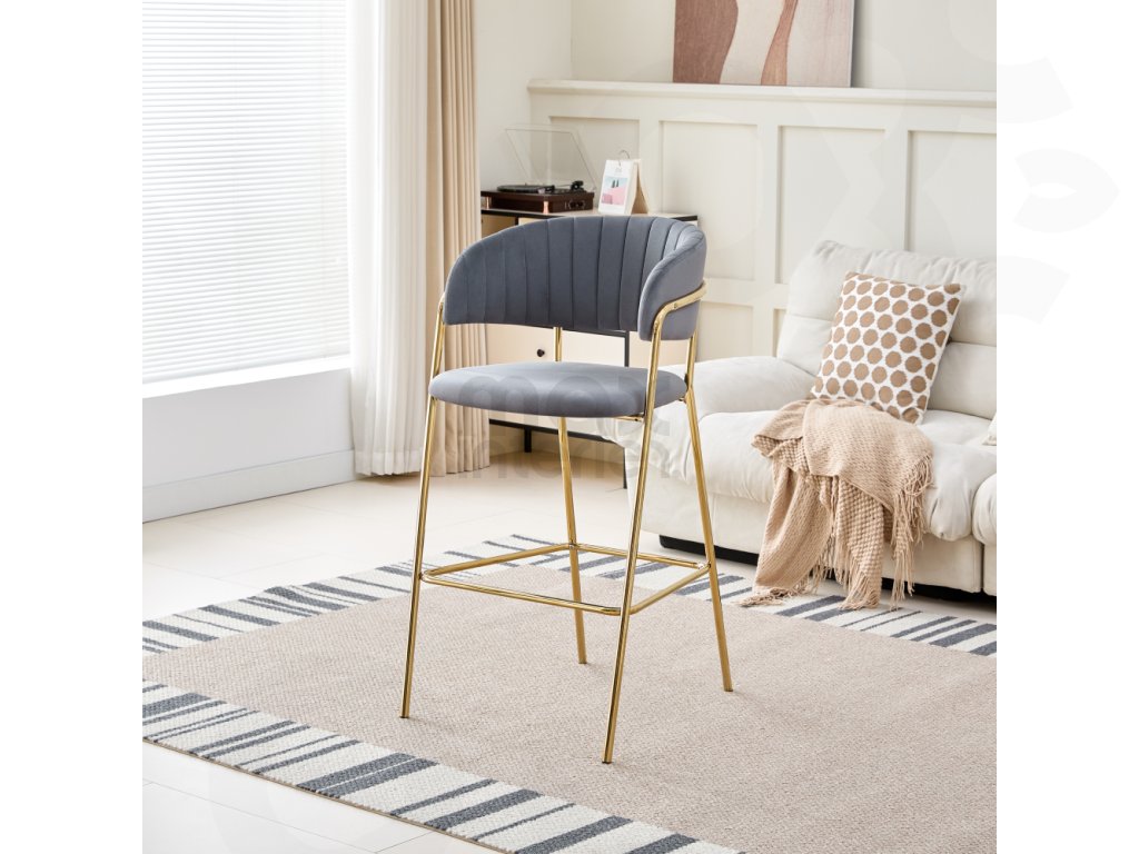 Barová židle DASMIN TYP 2 – Šedá / Zlatá | Luxusní komfort a styl do vašeho interiéru