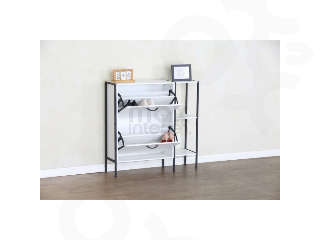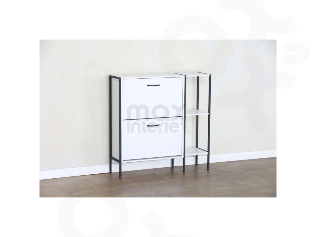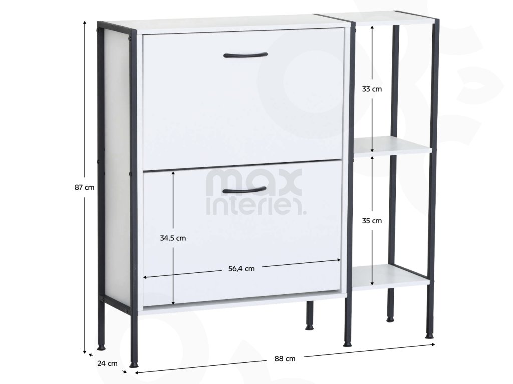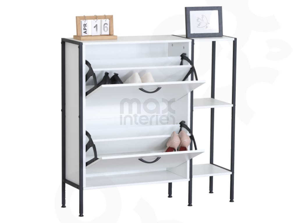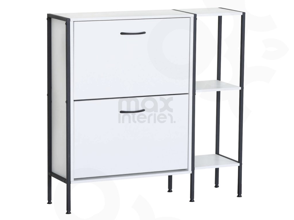 Moderní botník s výklopy – bílý / černý (88x24x87 cm)