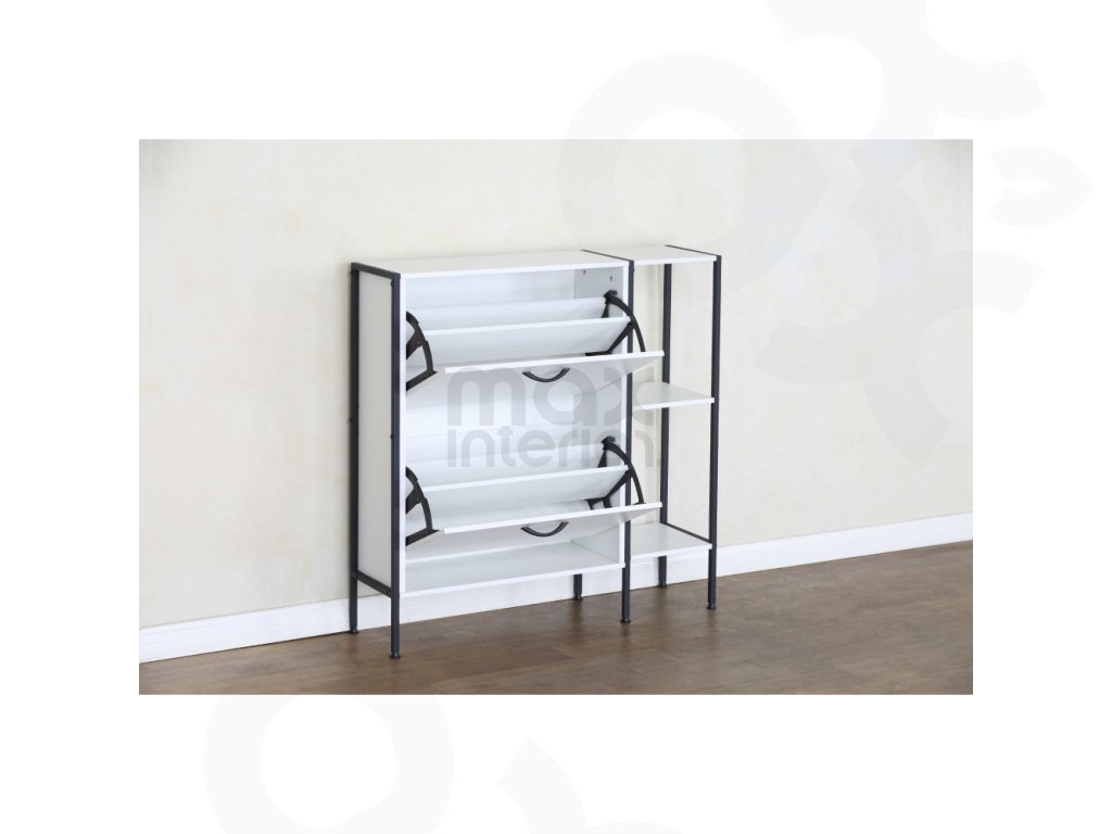 Elegantní a praktický botník s výklopy v moderním designu se skvěle hodí do každé předsíně. Vybírat můžete z bílé nebo černé barvy, které snadno sladíte s ostatním nábytkem. Díky svým kompaktním rozměrům 88x24x87 cm se hodí i do menších prostor, přesto nabízí dostatek úložného místa pro vaši obuv.
