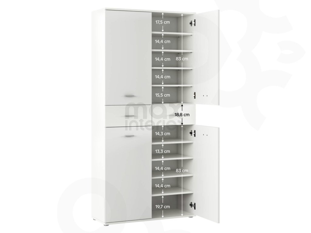 Botníková skříň VILOT v čistě bílém provedení je ideálním doplňkem do moderní i klasicky zařízené předsíně nebo chodby. Díky neutrální barvě prostor opticky rozjasní a zároveň nabídne praktické a přehledné uložení obuvi i dalších drobností.
