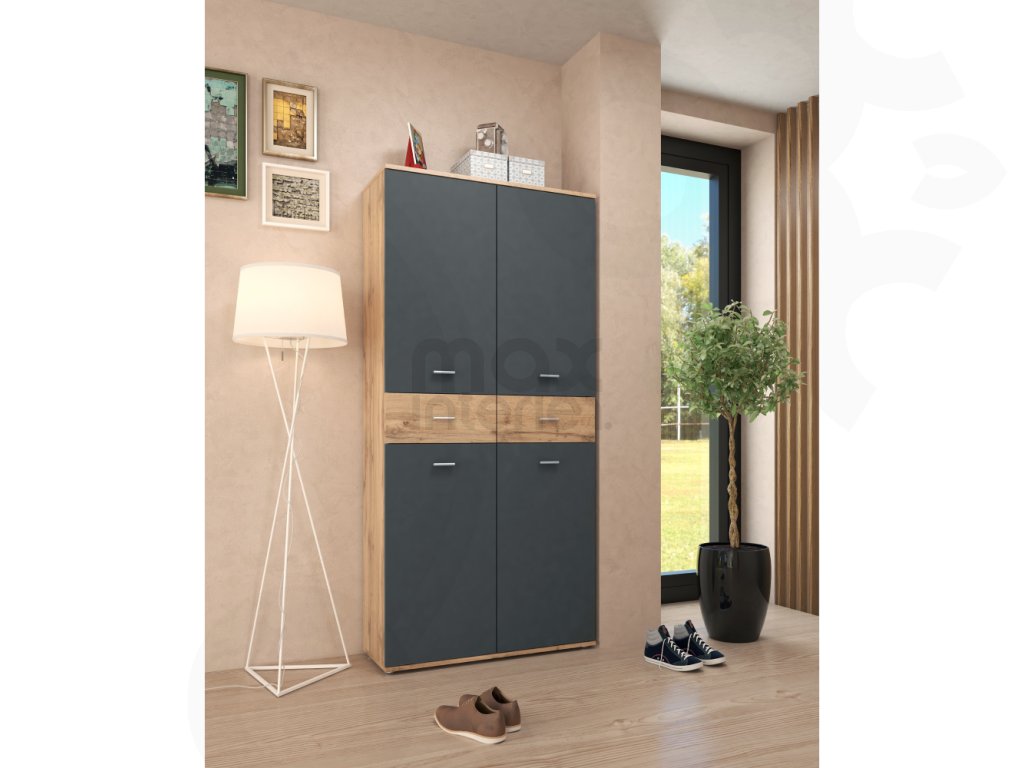 Botníková skříň VILOT v moderním barevném provedení grafit / dub wotan zaujme na první pohled. Kombinace tmavé šedé s přírodním dřevodekorem působí elegantně a současně teple. Ideální volba do moderních interiérů, kde oceníte nejen vzhled, ale i praktičnost a úložný prostor.