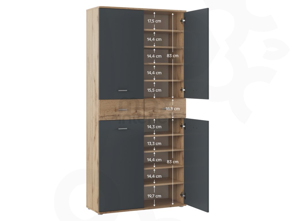 Botníková skříň VILOT v kombinaci grafit / dub wotan přináší do vašeho domova moderní styl a funkční řešení. Díky preciznímu zpracování a pevným materiálům představuje spolehlivý nábytek, který vydrží každodenní používání a zároveň obohatí vzhled vašeho interiéru.