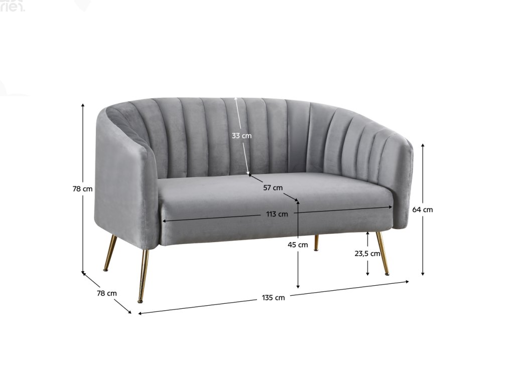 Čalouněná pohovka CARSTEN šedá – Velvet látka / chrom-zlatý
