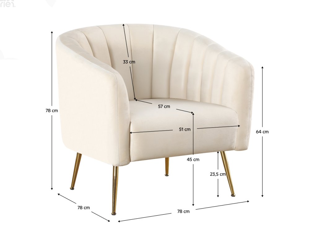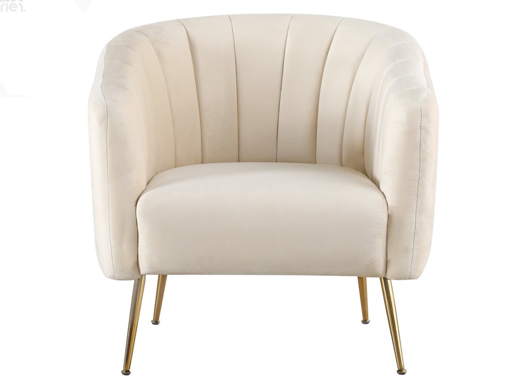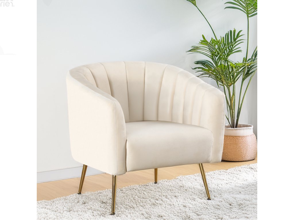 Čalouněné křeslo CARSTEN – béžová Velvet látka / chrom-zlatý
