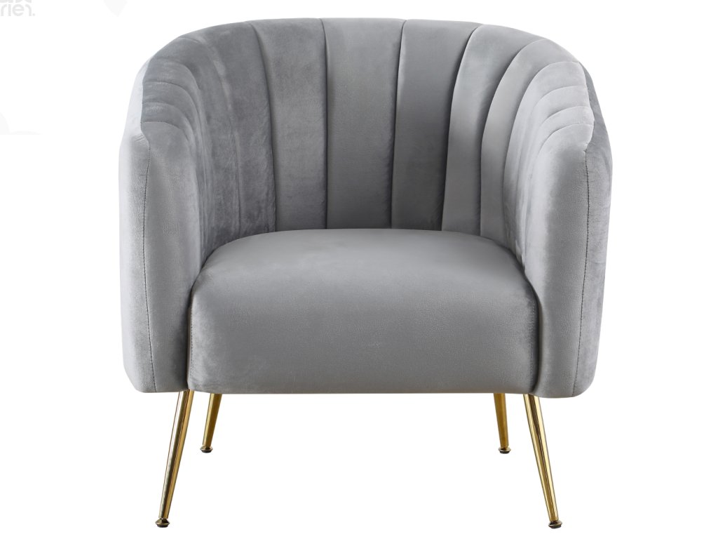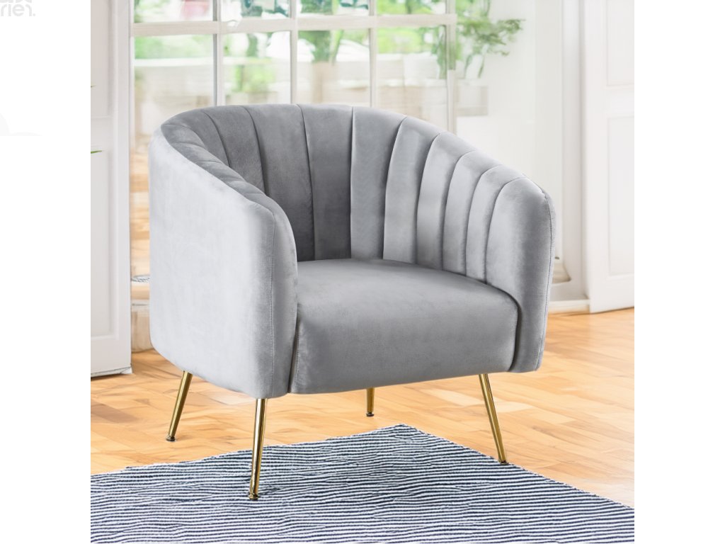 Čalouněné křeslo CARSTEN – šedá Velvet látka / chrom-zlatý