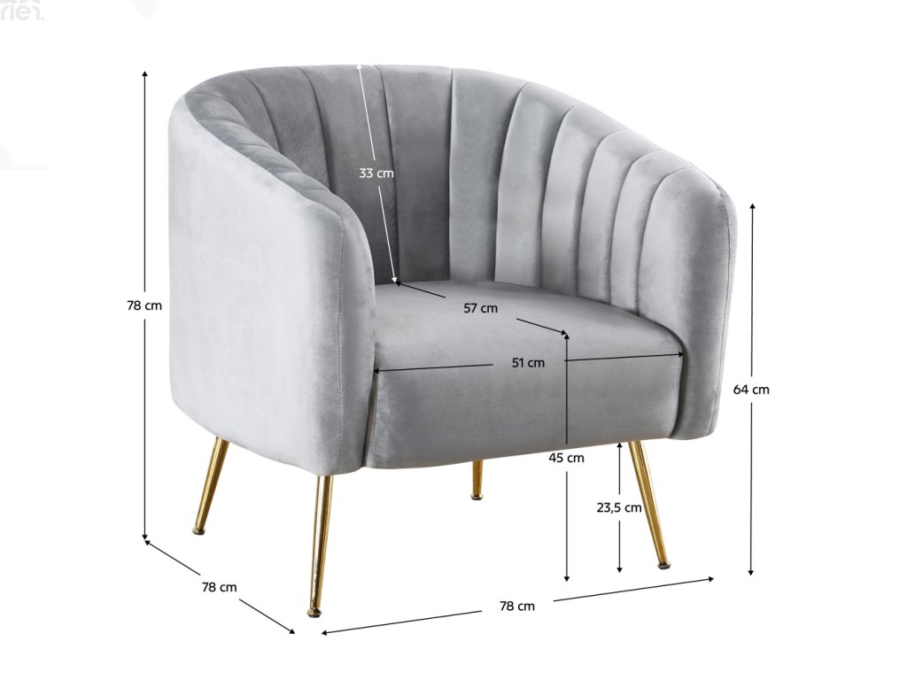 Výška sedu: 45 cm, hloubka sedu: 57 cm, šířka sedu: 51 cm