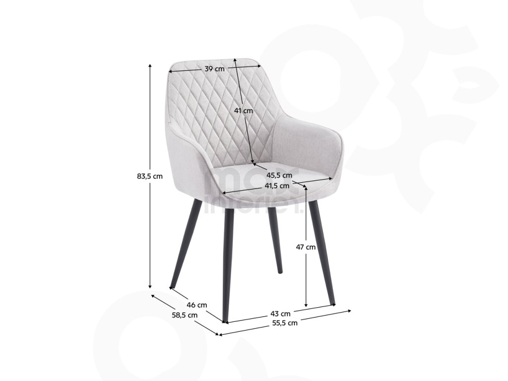 Rozměry vhodné pro každého: Šířka sedu 41,5 cm, hloubka 45,5 cm, výška sedu 47 cm, výška zádové opěrky 41 cm.