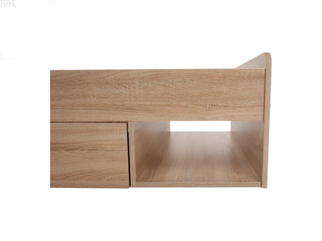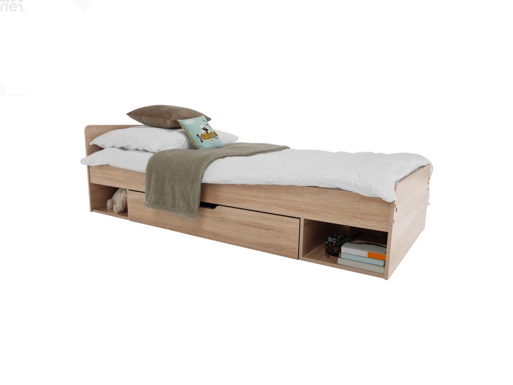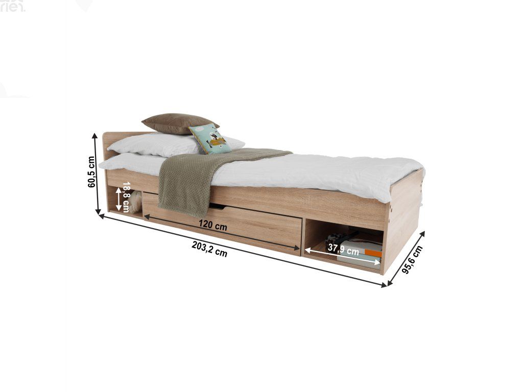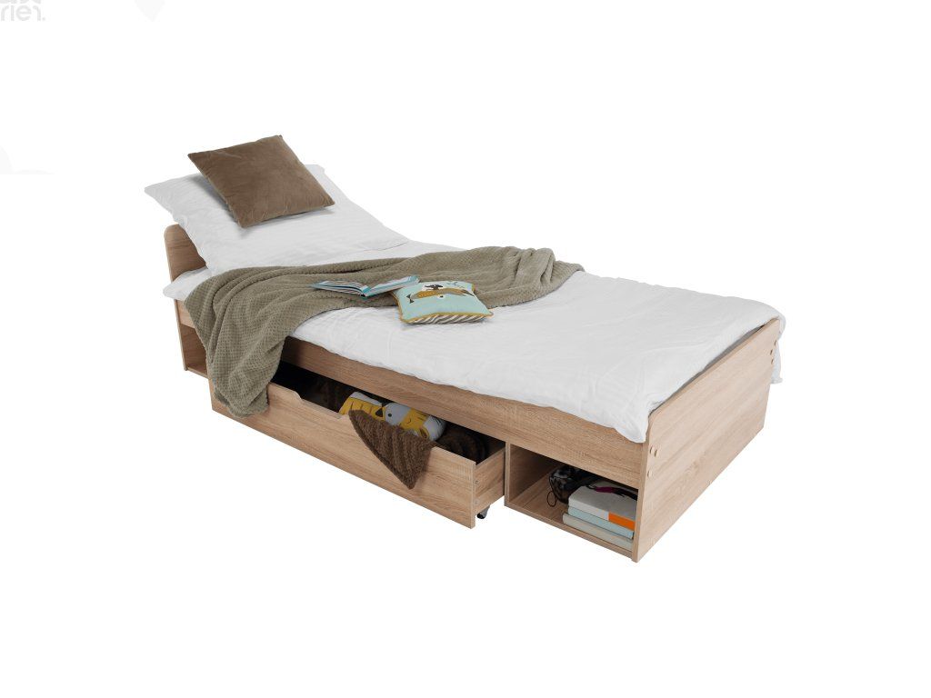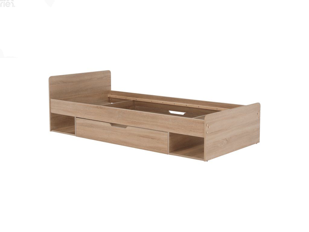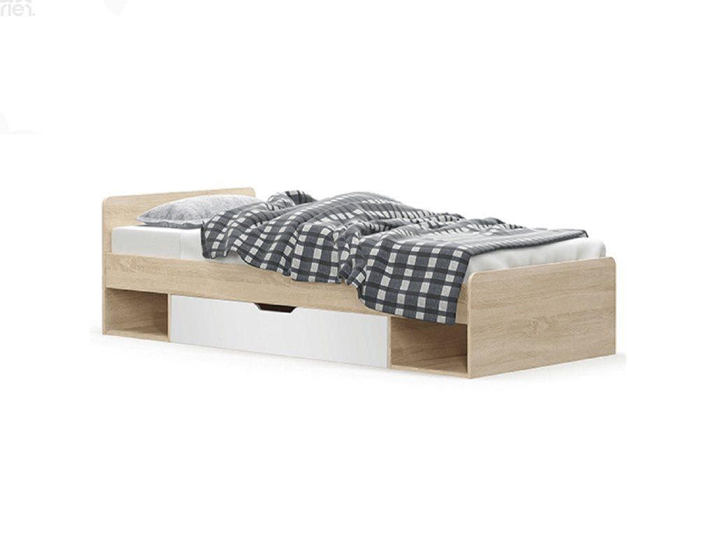 Postel je dodávána bez roštu a matrace, doporučujeme dokoupit rolovaný rošt 90x200 cm. Možnost umístit noční stolek a šuplíky z pravé či levé strany podle potřeby. Pro optimální komfort doporučujeme pěnovou nebo pružinovou matraci s výškou min. 18 cm.