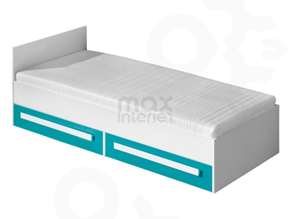 Dětská postel GALIO 11 ( 90x200 ) - bílá / tyrkys lesk