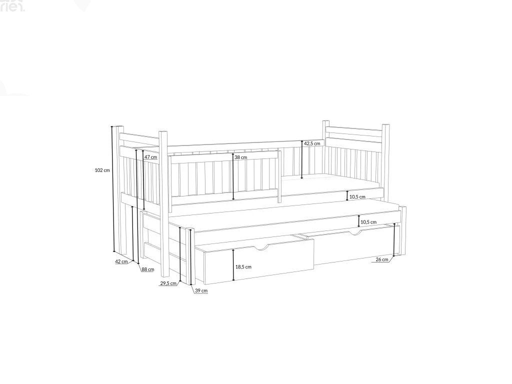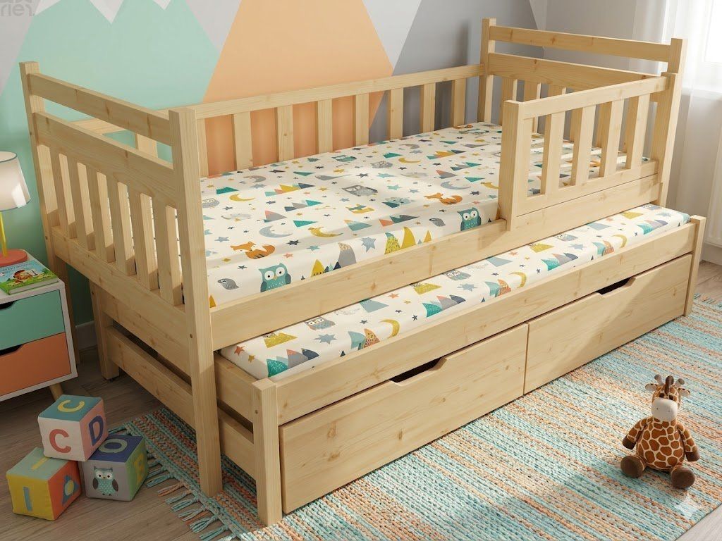 Dětská postel s přistýlkou a zábranou OTTO PINE vč. roštů + ŠUPLÍKY