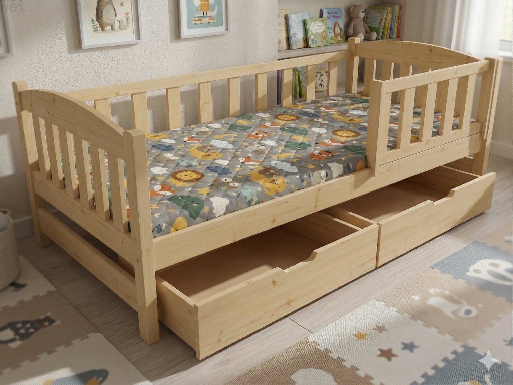 Dětská postel se zábranou DIANA PINE vč. roštu + ŠUPLÍKY