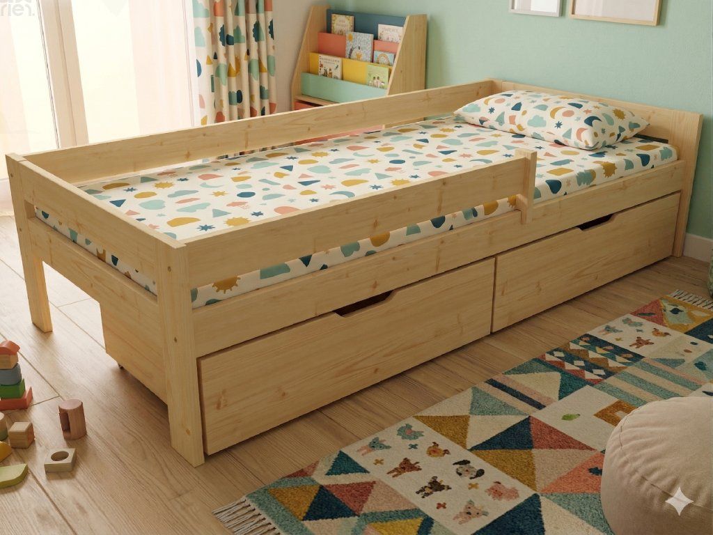 Dětská postel se zábranou DOMINIK PINE vč. roštu + ŠUPLÍKY