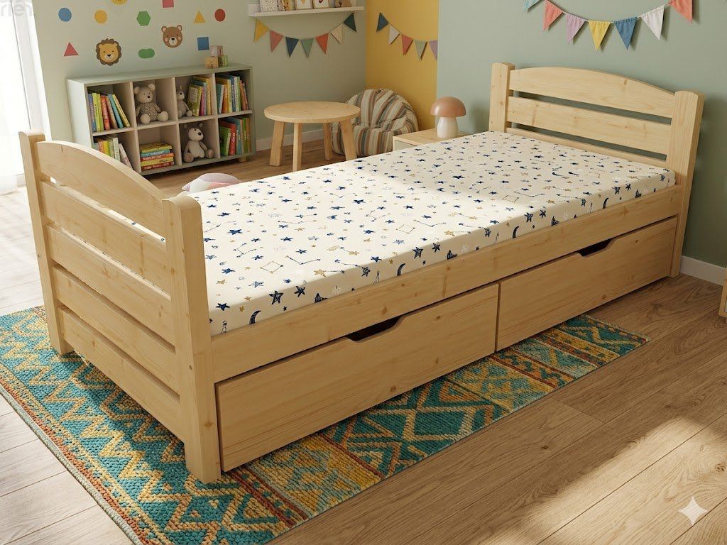 Dětská postel se zábranou KAMIL PINE vč. roštu + ŠUPLÍKY