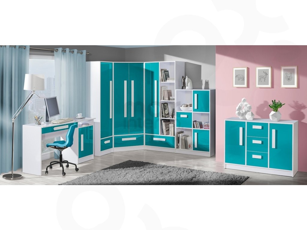 Dětský psací stůl GALIO 9 - bílá / tyrkys lesk