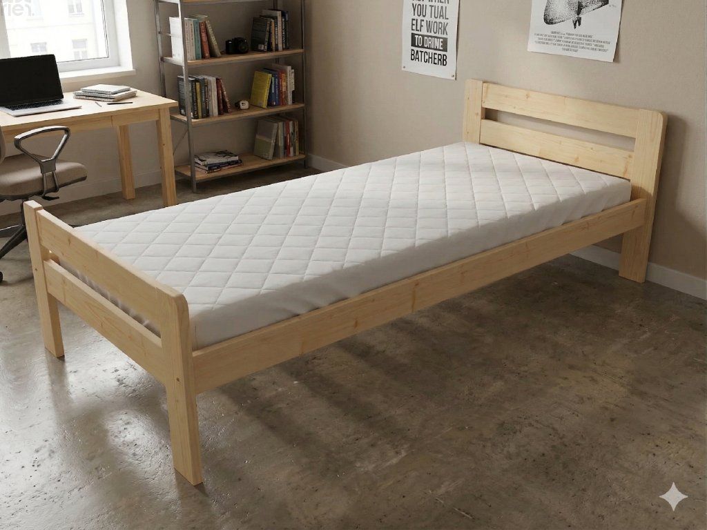 Dřevěná postel 100x200 cm z masivní borovice – VMK2C nabízí pevnost, komfort a přírodní eleganci. Je ideální pro menší ložnice, studentské pokoje nebo hostinské místnosti, kde je důležitá stabilita a dlouhá životnost. Postel je dodávána včetně laťového roštu