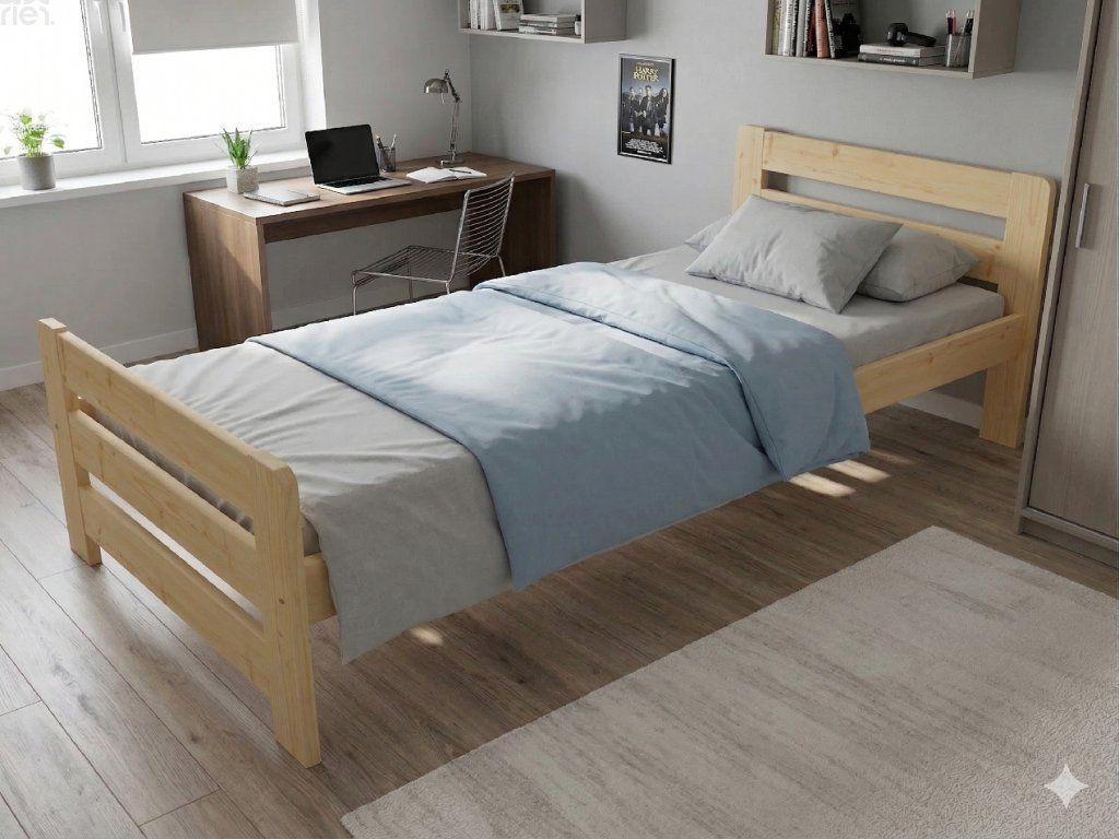 Dřevěná postel 100x200 cm z masivní borovice – VMK2D nabízí pevnost, komfort a přírodní eleganci. Je ideální pro menší ložnice, studentské pokoje nebo hostinské místnosti, kde je důležitá stabilita a dlouhá životnost. Postel je dodávána včetně laťového roštu