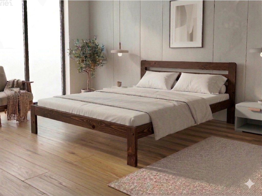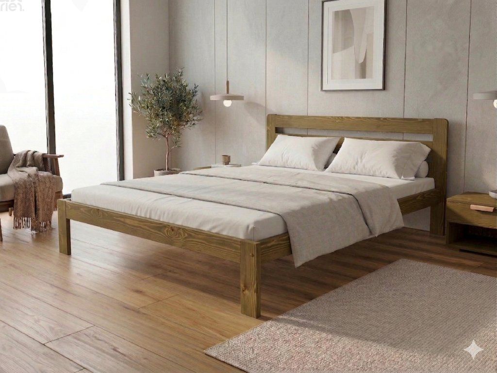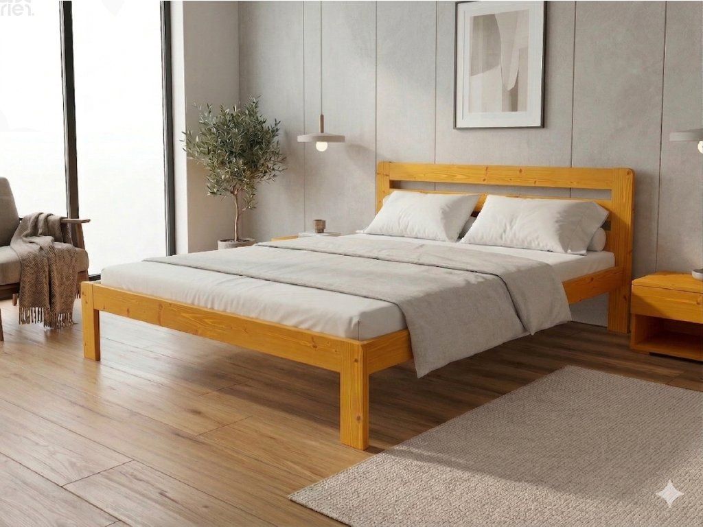 Dřevěná postel 120x200 cm z masivní borovice – VMK1A nabízí pevnost, komfort a přírodní eleganci. Je ideální pro menší ložnice, studentské pokoje nebo hostinské místnosti, kde je důležitá stabilita a dlouhá životnost. Postel je dodávána včetně laťového roštu