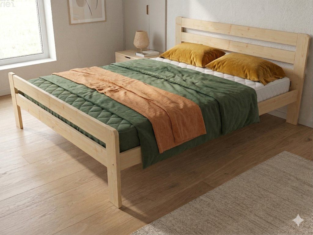 Dřevěná postel 120x200 cm z masivní borovice – VMK1C nabízí pevnost, komfort a přírodní eleganci. Je ideální pro menší ložnice, studentské pokoje nebo hostinské místnosti, kde je důležitá stabilita a dlouhá životnost. Postel je dodávána včetně laťového roštu
