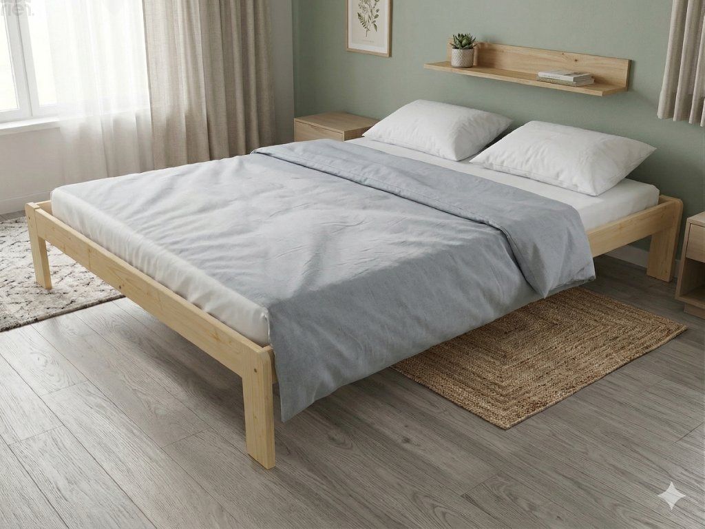 Dřevěná postel 140x200 cm z masivní borovice – VMK4A nabízí pevnost, komfort a přírodní eleganci. Je ideální pro menší ložnice, studentské pokoje nebo hostinské místnosti, kde je důležitá stabilita a dlouhá životnost. Postel je dodávána včetně laťového roštu