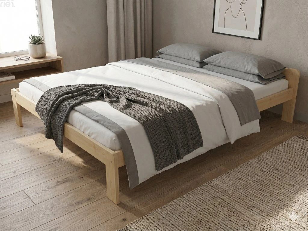Dřevěná postel 200x200 cm z masivní borovice – VMK3A nabízí pevnost, komfort a přírodní eleganci. Je ideální pro menší ložnice, studentské pokoje nebo hostinské místnosti, kde je důležitá stabilita a dlouhá životnost. Postel je dodávána včetně laťového roštu
