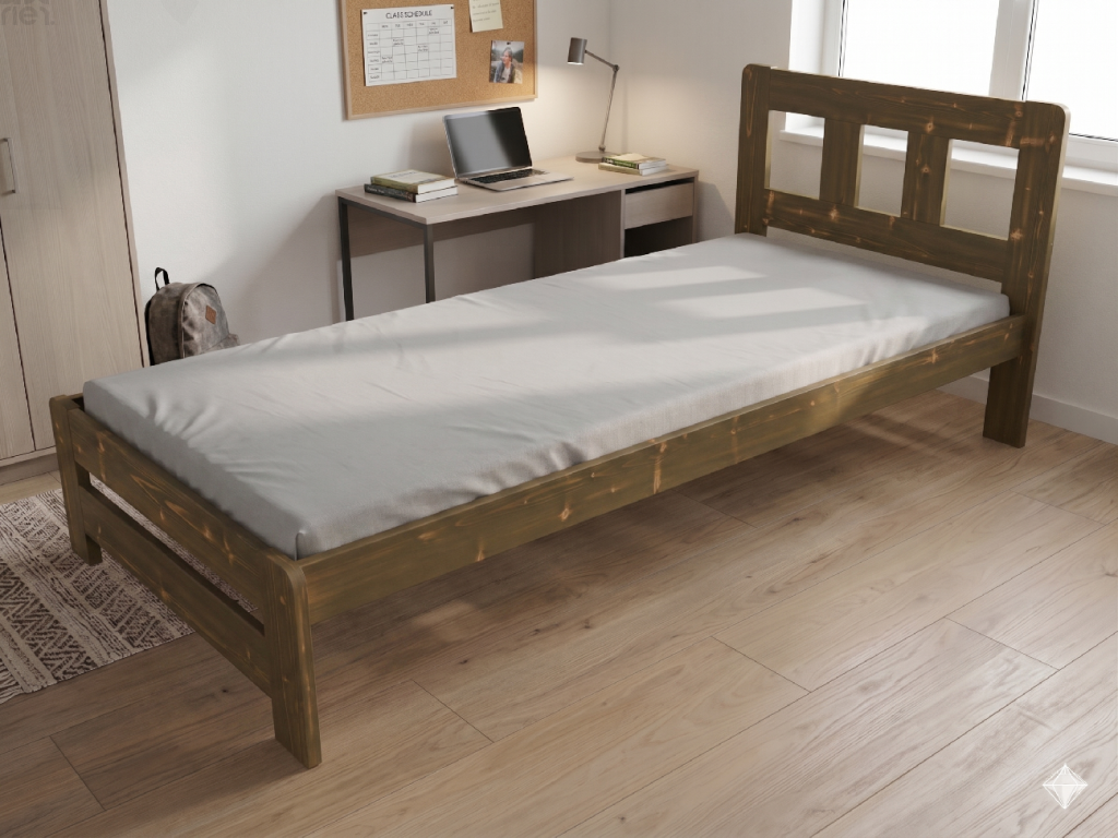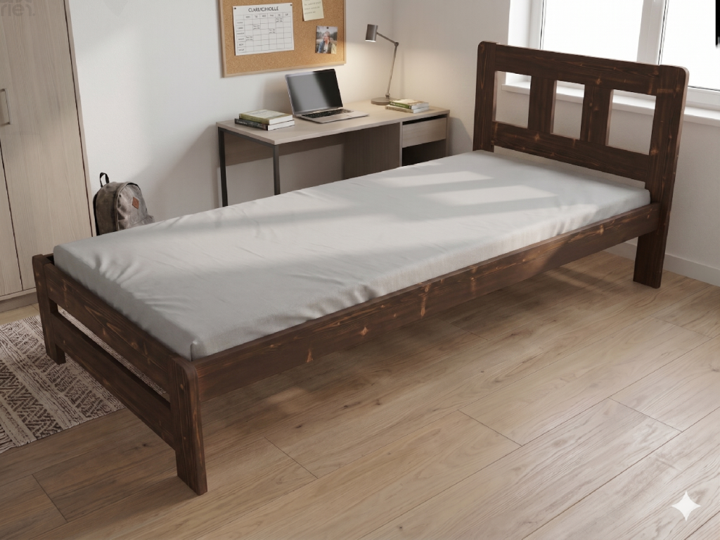 Dřevěná postel 80x200 cm z masivní borovice – VMK10B nabízí pevnost, komfort a přírodní eleganci. Je ideální pro menší ložnice, studentské pokoje nebo hostinské místnosti, kde je důležitá stabilita a dlouhá životnost. Postel je dodávána včetně laťového roštu