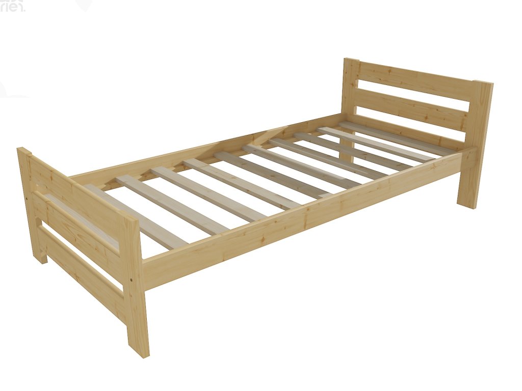 Dřevěná postel 80x200 cm z masivní borovice – VMK5D nabízí pevnost, komfort a přírodní eleganci. Je ideální pro menší ložnice, studentské pokoje nebo hostinské místnosti, kde je důležitá stabilita a dlouhá životnost. Postel je dodávána včetně laťového roštu