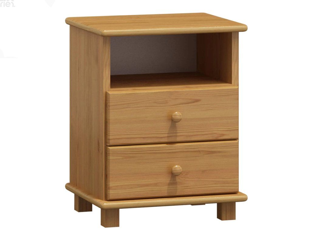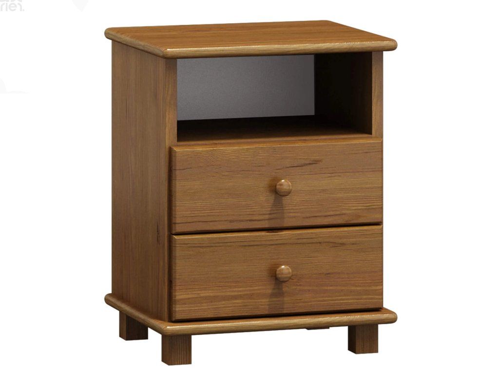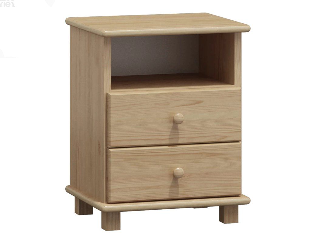 Noční stolek CLASSIC KN-26 masiv borovice – kvalitní dřevěný noční stolek se zásuvkami