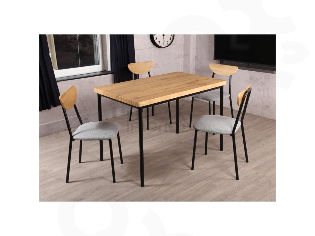 Jídelní set ARSENI ( stůl + 4 židle ) 1+4, dub světlý / šedá / černá