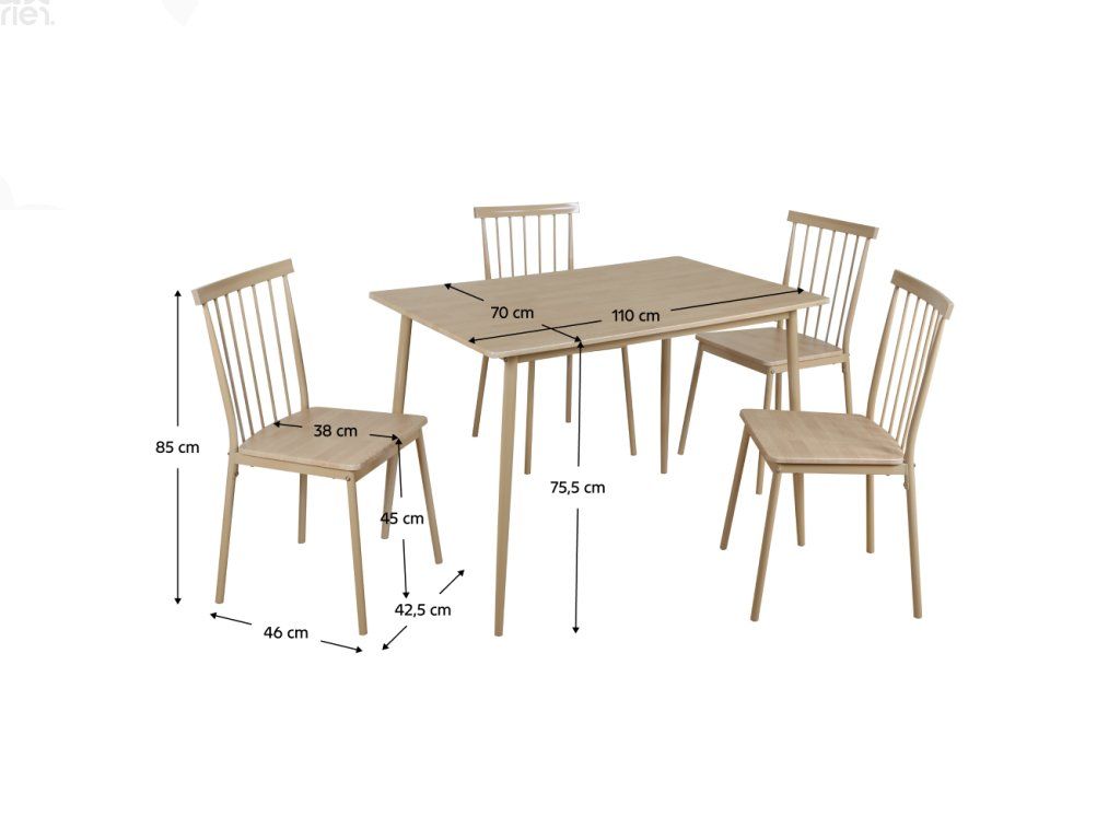 Obsah balení: 1 stůl + 4 židle, vhodné pro 4 osoby