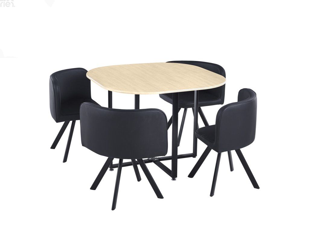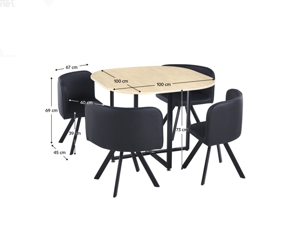 Moderní jídelní set MAARTEN spojuje nadčasový design s vysokou funkčností. Stylová kombinace dubového stolu a černých křesel se hodí do různých interiérů a přináší pohodlí i odolnost pro každodenní používání.