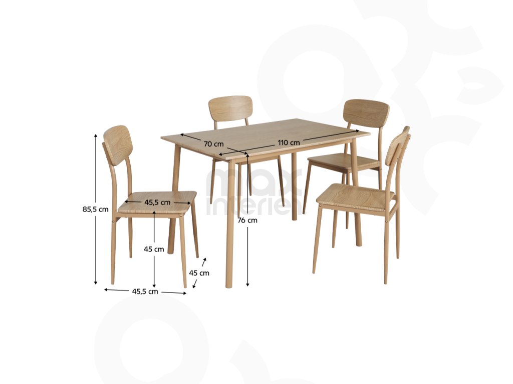 Jídelní set MAHSEN (stůl + 4 židle) – dub přírodní