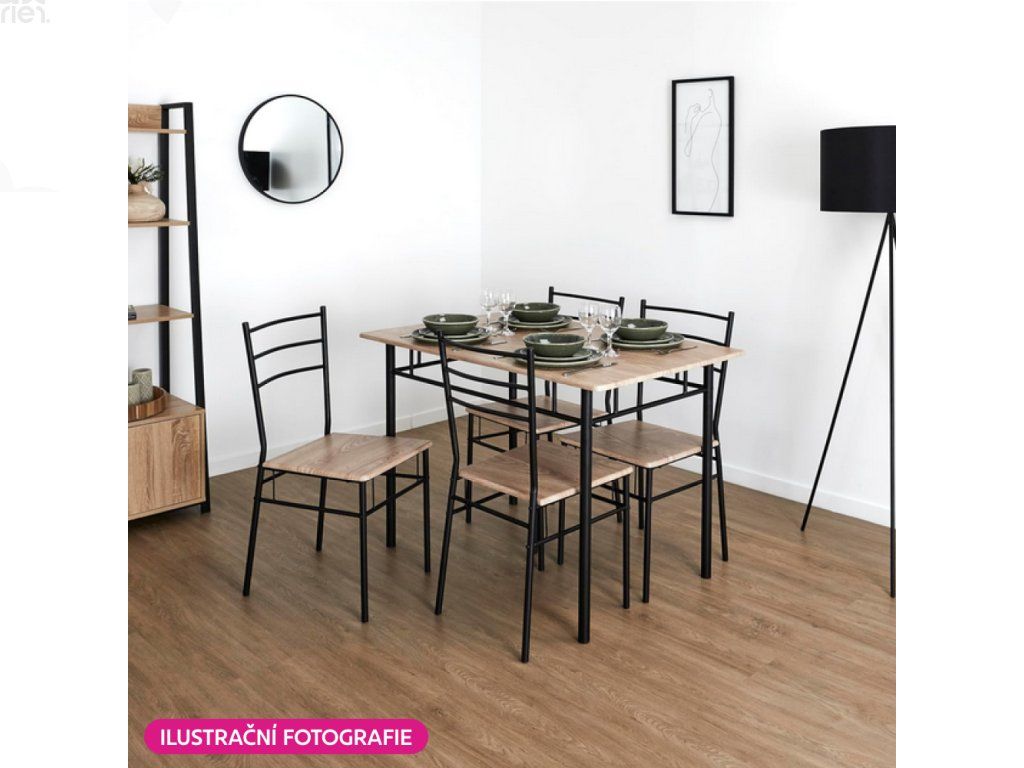 Jídelní set RAYNELL ( stůl + 4 židle ) dub sonoma / černá