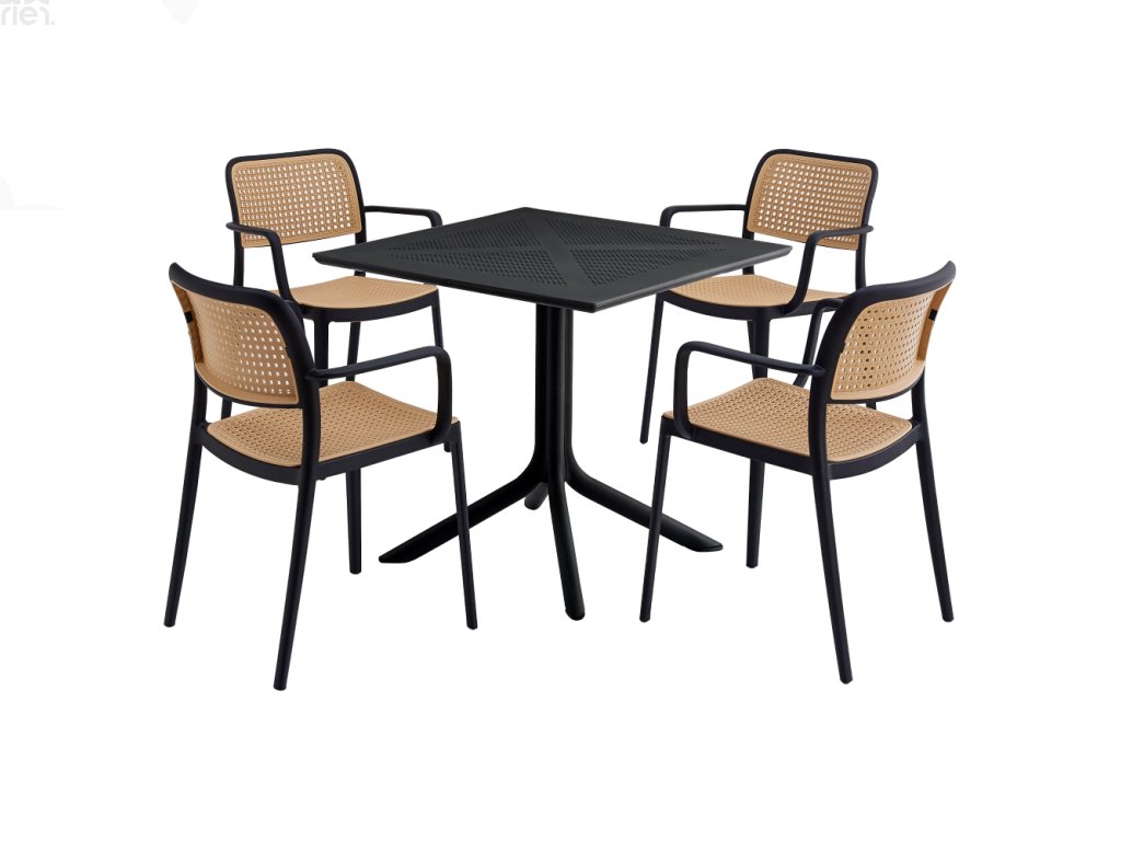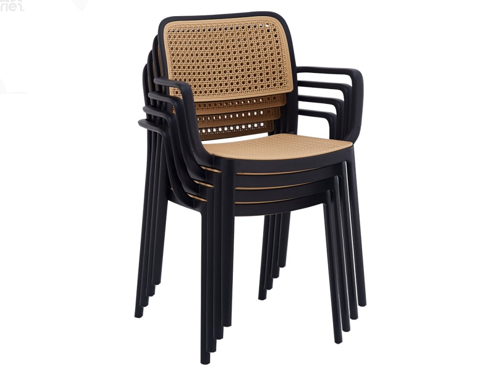 Jídelní stohovatelná židle RAVIA v kombinaci černé a béžové barvy představuje nadčasové a funkční řešení pro moderní interiéry i venkovní prostory. Díky kvalitnímu plastovému materiálu je židle odolná, snadno udržovatelná a vhodná pro každodenní používání v domácnosti, restauracích, kavárnách nebo na terasách a zahradách.