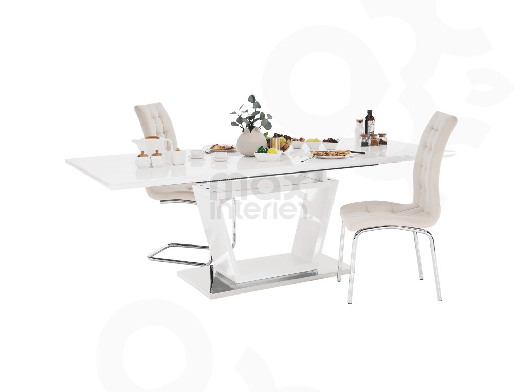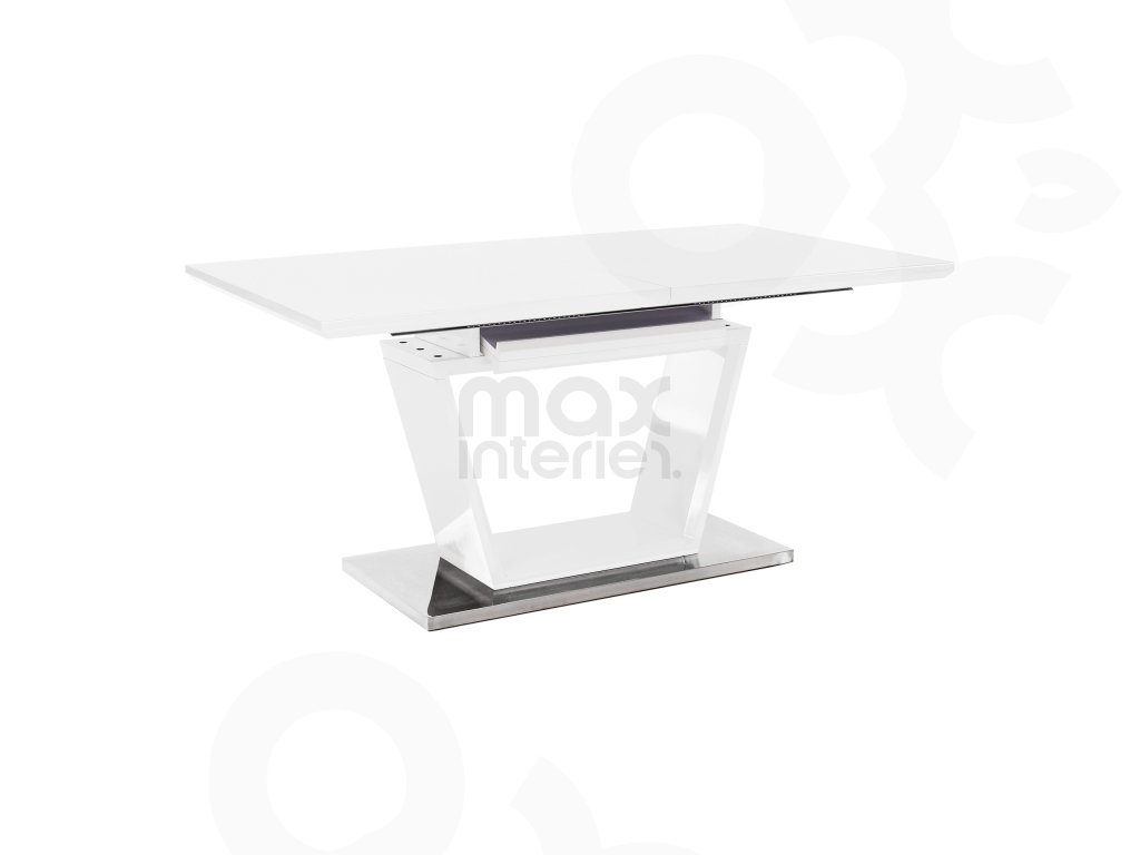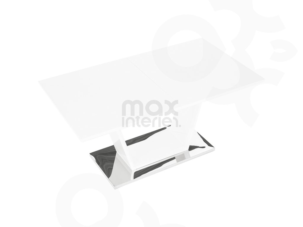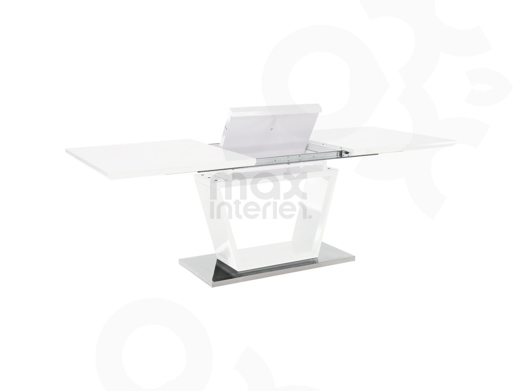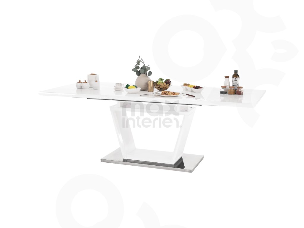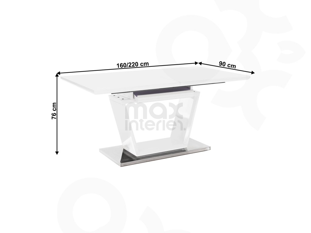 luxusní a designový rozkládací jídelní stůl, barevné provedení: bílá s extra vysokým leskem HG, materiál: MDF + oceľ, ŠxHxV: 160-220x90x76 cm.