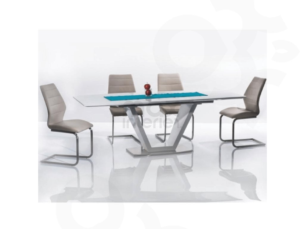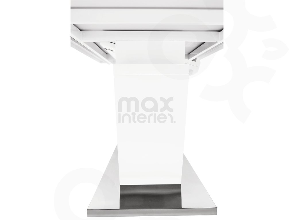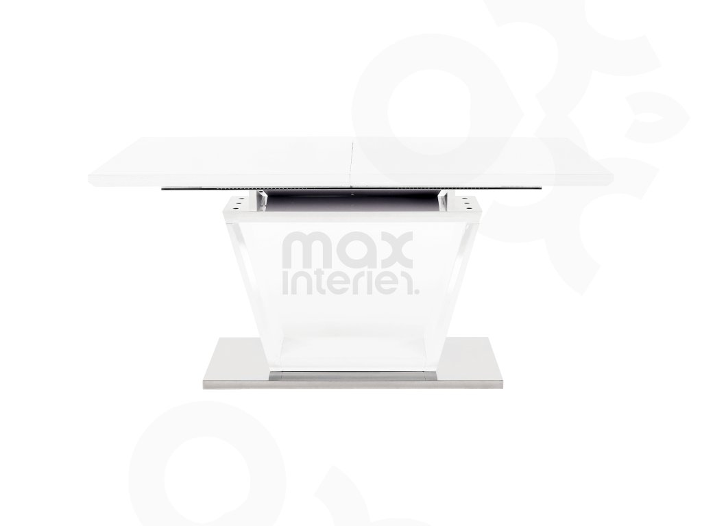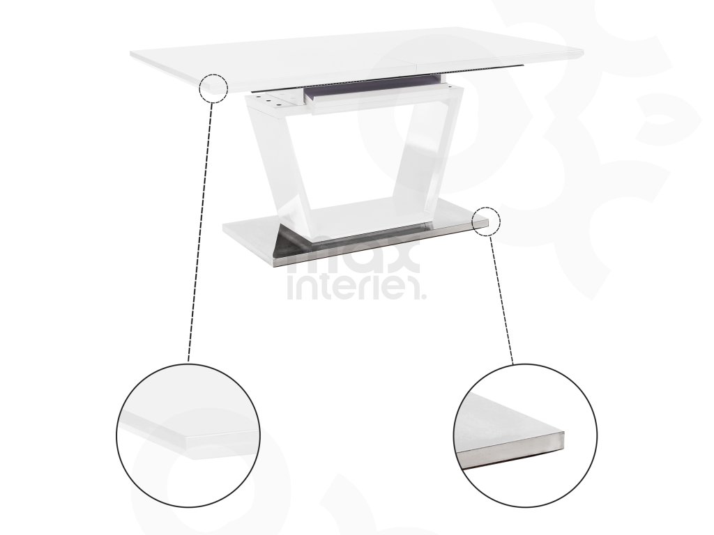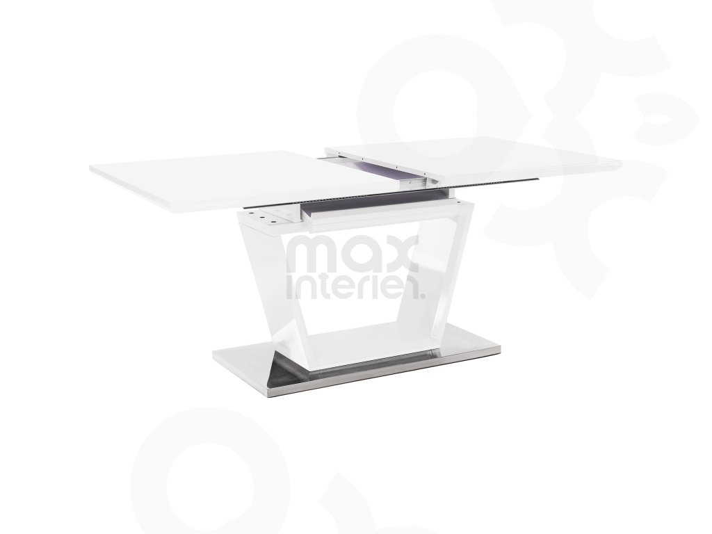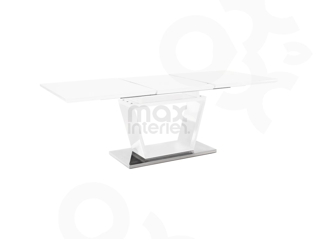 luxusní a designový rozkládací jídelní stůl, barevné provedení: bílá s extra vysokým leskem HG, materiál: MDF + oceľ, ŠxHxV: 160-220x90x76 cm.
