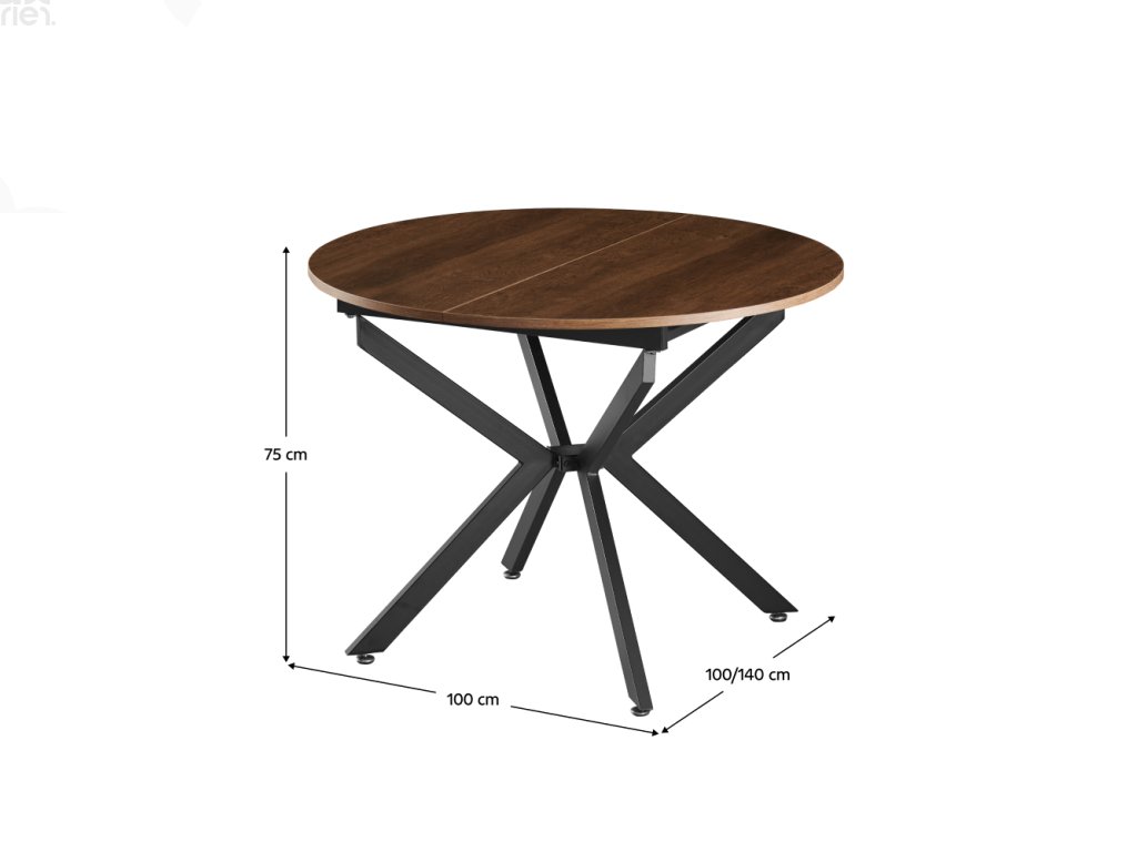 Kulatá deska z kvalitního MDF materiálu působí elegantně a přirozeně. Kombinace tmavého dubu a černých kovových nohou dodává stolu sofistikovaný industriální vzhled s nádechem tradičního dřeva, který se hodí do moderních i klasických interiérů. Díky stabilní konstrukci a pevným materiálům je stůl dlouhodobě odolný a praktický. Dodává se v demontu, což usnadňuje přepravu a montáž.