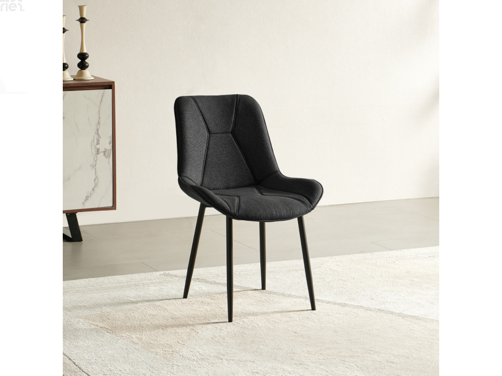 Jídelní židle DELTA v elegantní kombinaci tmavě šedé a černé je navržena pro moderní interiéry, kde je kladen důraz na styl, pohodlí a dlouhou životnost. Díky svému nadčasovému vzhledu a dekorativnímu prošití působí židle velmi esteticky a snadno se kombinuje s různými typy jídelních stolů i interiérových stylů.