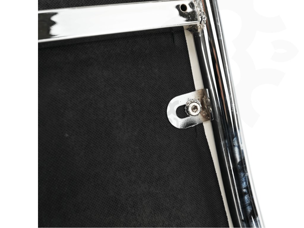 Kvalitní materiály: látka + ekokůže s chromovanými detaily pro moderní a elegantní vzhled.