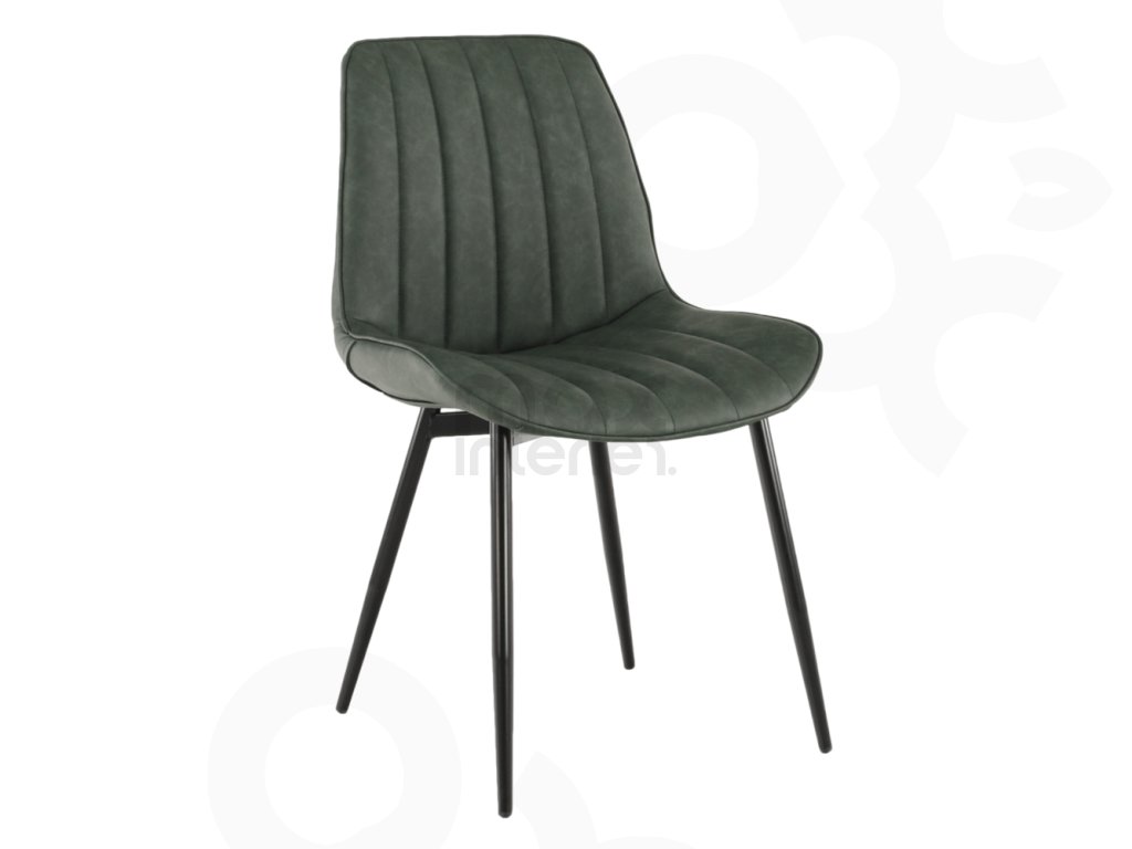 Jídelní židle HAZAL v atraktivní kombinaci zeleného čalounění z ekokůže a černých kovových nohou přináší do interiéru moderní a elegantní vzhled. Kvalitní ekokůže se vyznačuje snadnou údržbou a vysokou odolností, což potvrzuje i hodnota 68 000 Martindale. Židle je díky tomu vhodná pro každodenní používání v kuchyni či jídelně.