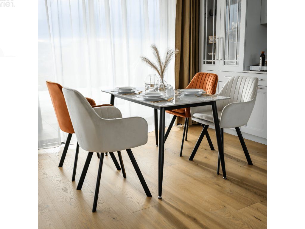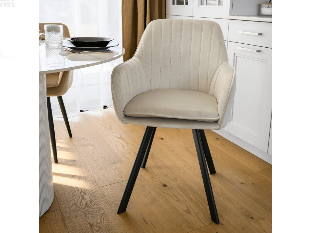 Jídelní židle JOLET v béžovošedé barvě z luxusní látky Velvet představuje ideální spojení moderního designu a komfortu. Díky stylovému provedení a měkké sedací části se stane elegantním doplňkem každé jídelny.