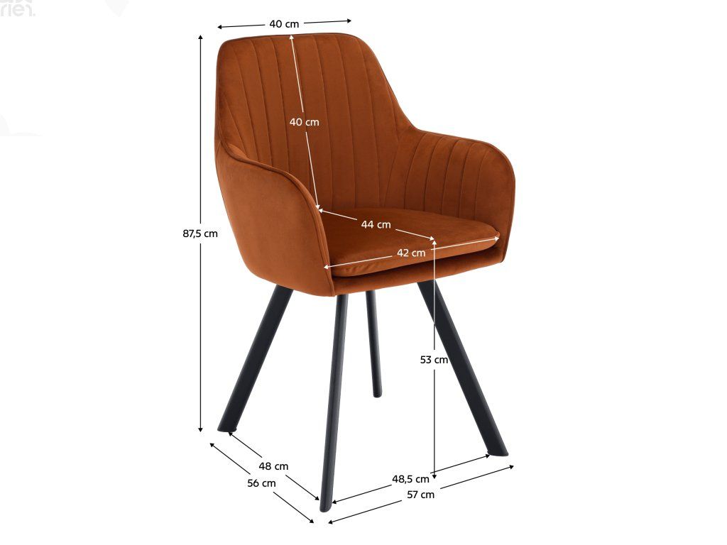 Praktické rozměry: Šířka 57 cm, hloubka 56 cm, výška 87,5 cm a výška sedu 53 cm nabízí pohodlné sezení pro různé typy postav.