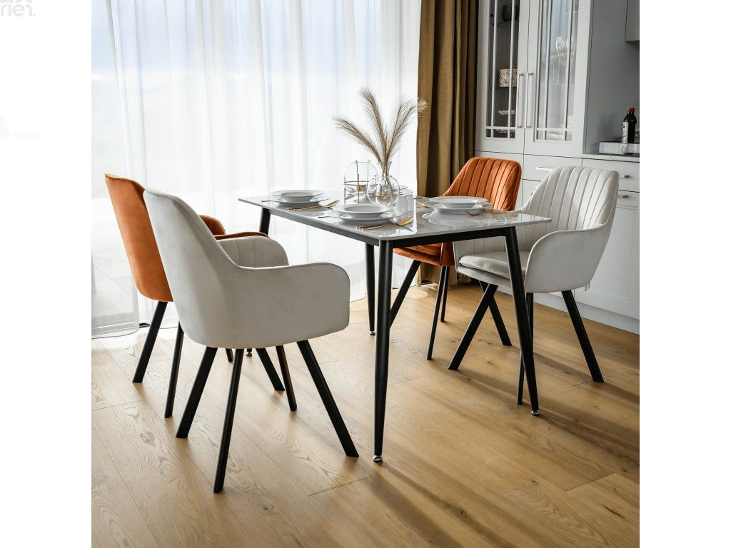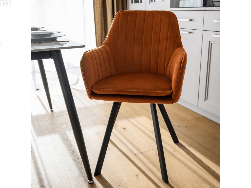 Oživte svou jídelnu či kuchyň s elegantními jídelními židlemi JOLET v moderním odstínu terakota Velvet. Židle spojuje stylový design, pohodlí a vysokou odolnost, díky čemuž je vhodná pro každodenní použití.