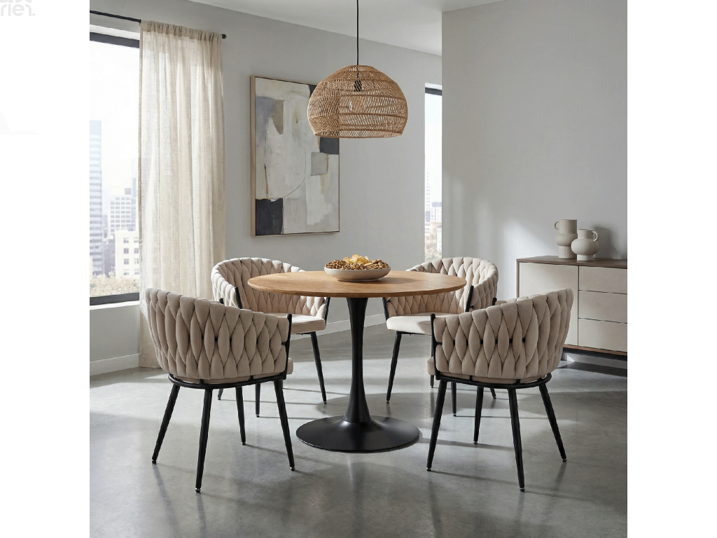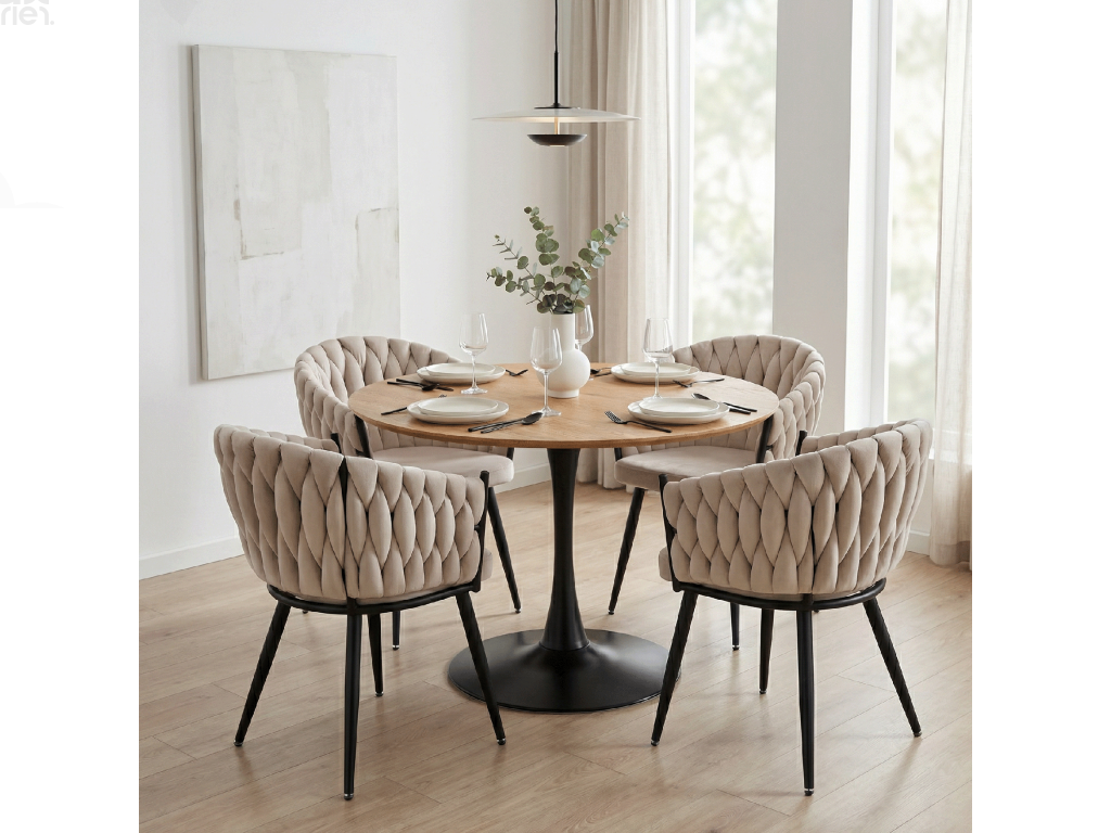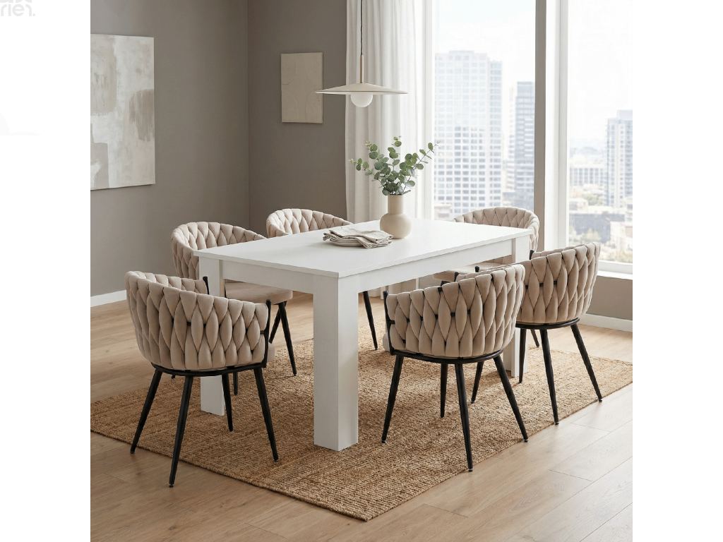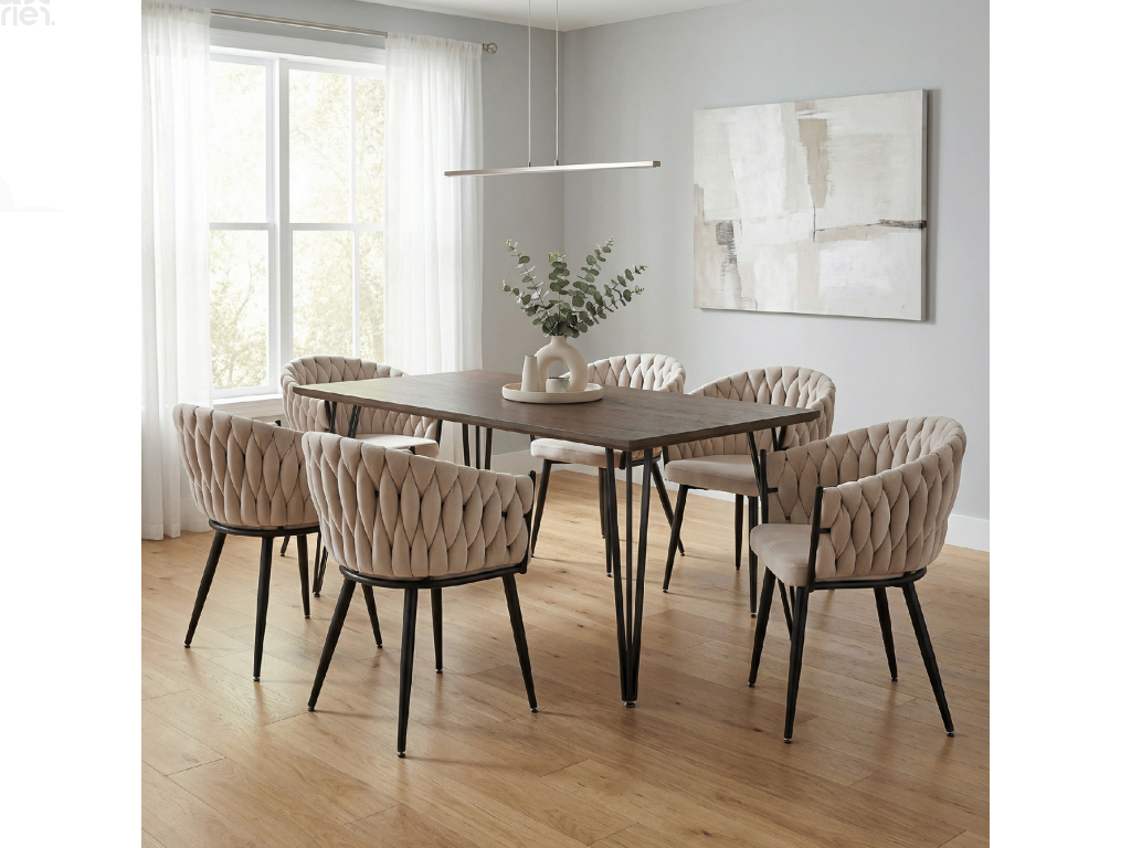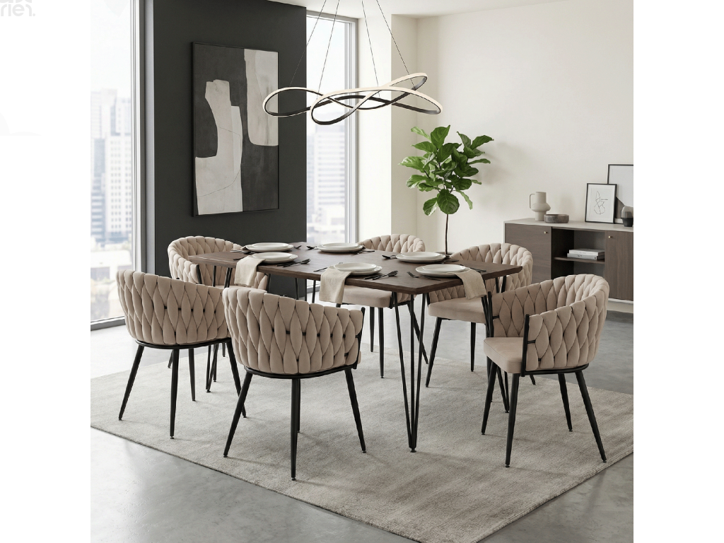 Oživte svůj jídelní prostor elegantní jídelní židlí BLER. Tato designová židle kombinuje luxusní světle béžovou látku Velvet s pevnou černou kovovou konstrukcí, která zajišťuje stabilitu a dlouhou životnost. Moderní prošívání dodává židli jedinečný charakter a elegantní vzhled.