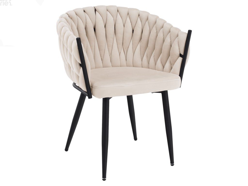 Jídelní židle / křeslo BLER – světle béžová Velvet látka / černá