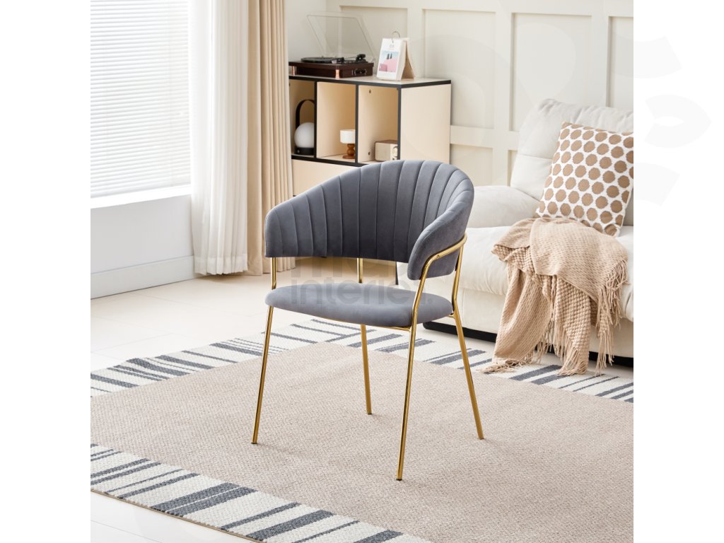 Objevte pohodlí a eleganci v jedné židli – jídelní křeslo DASMIN NEW TYP 1 je ideální volbou pro váš moderní interiér. Kombinace luxusní šedé látky Velvet a zlatého chromového rámu dodává vašemu jídelnímu prostoru stylový a sofistikovaný vzhled.