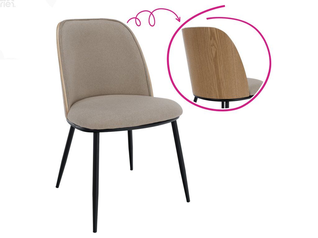 Jídelní židle NATALYA – béžovohnědá / dřevo natural / černá