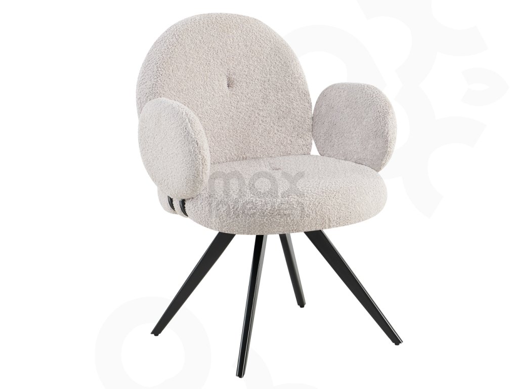 Otočná jídelní židle JORITH ve světle šedé a černé barvě přináší moderní vzhled, vysoký komfort a praktické využití v jednom. Hebká látka Bouclé dodává židli nadčasový charakter, zároveň se vyznačuje vysokou oděruodolností 45 000 cyklů, což zaručuje dlouhou životnost i při každodenním používání. Stabilní kovová konstrukce, pohodlné čalounění a ergonomicky tvarované opěrky rukou poskytují pevnou oporu a příjemné sezení.
