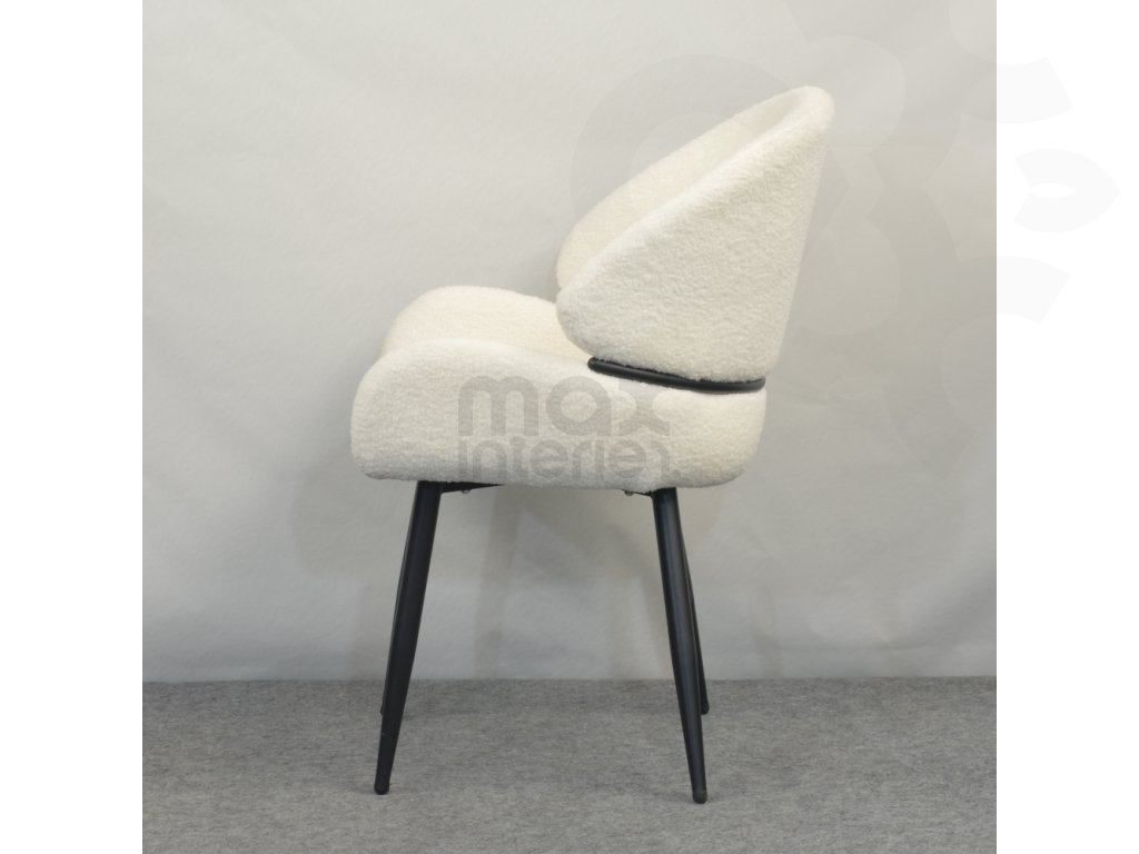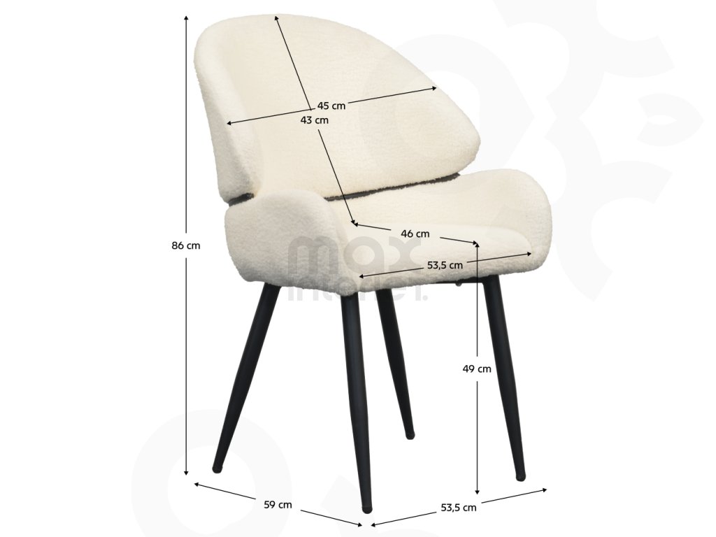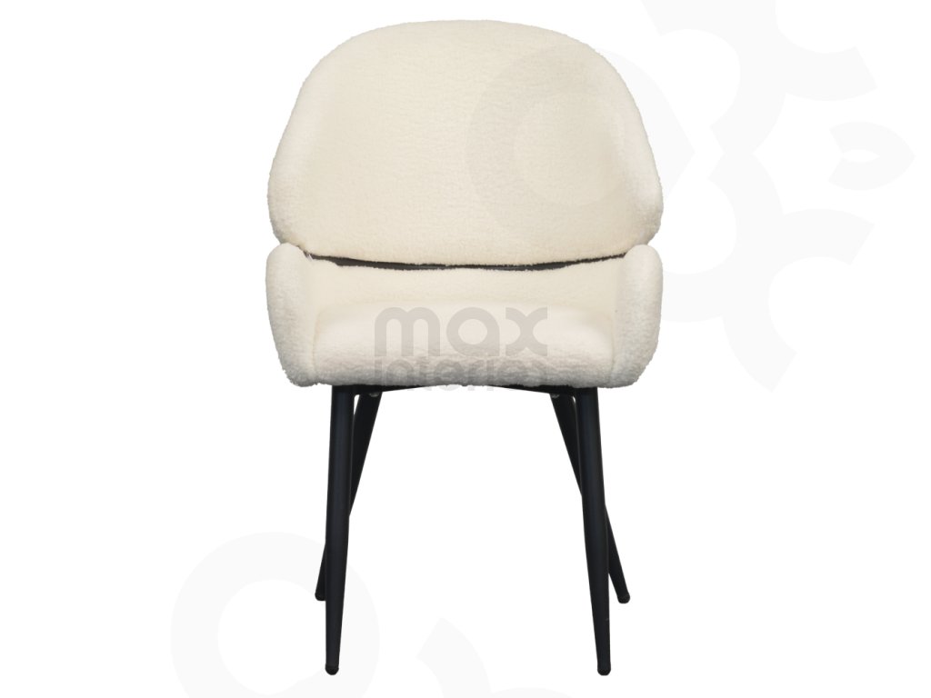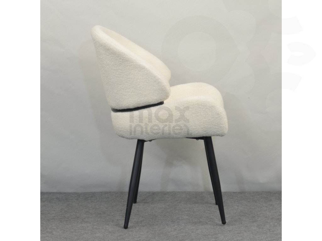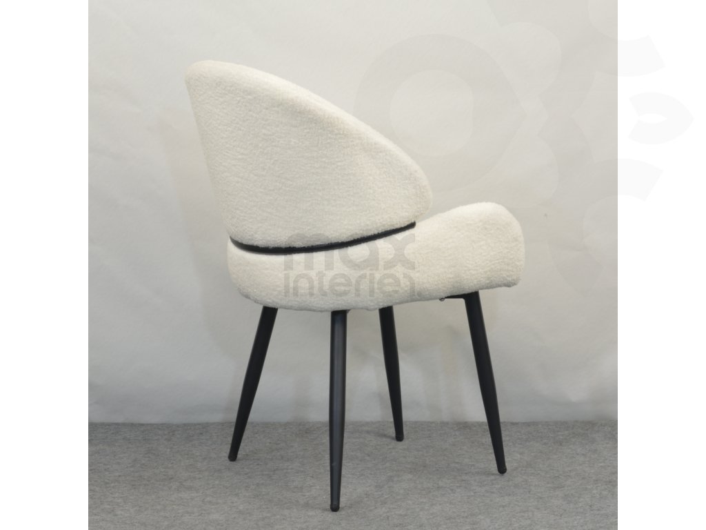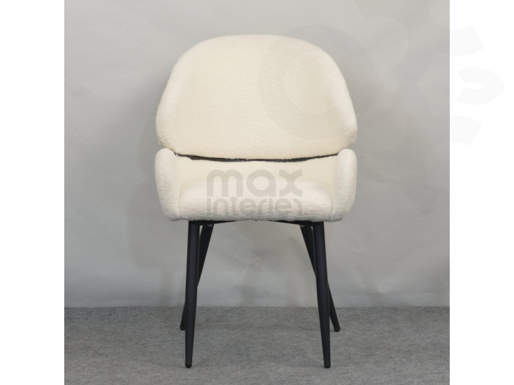 Jídelní židle SANAKO kombinuje styl, pohodlí a odolnost. Sedák je čalouněný bílé látky Bouclé, která je příjemná na dotek a díky Martindale 45 000 oděrů odolná proti každodennímu používání. Robustní černá kovová podnož zajišťuje stabilitu a moderní vzhled, který se hodí do každého interiéru.