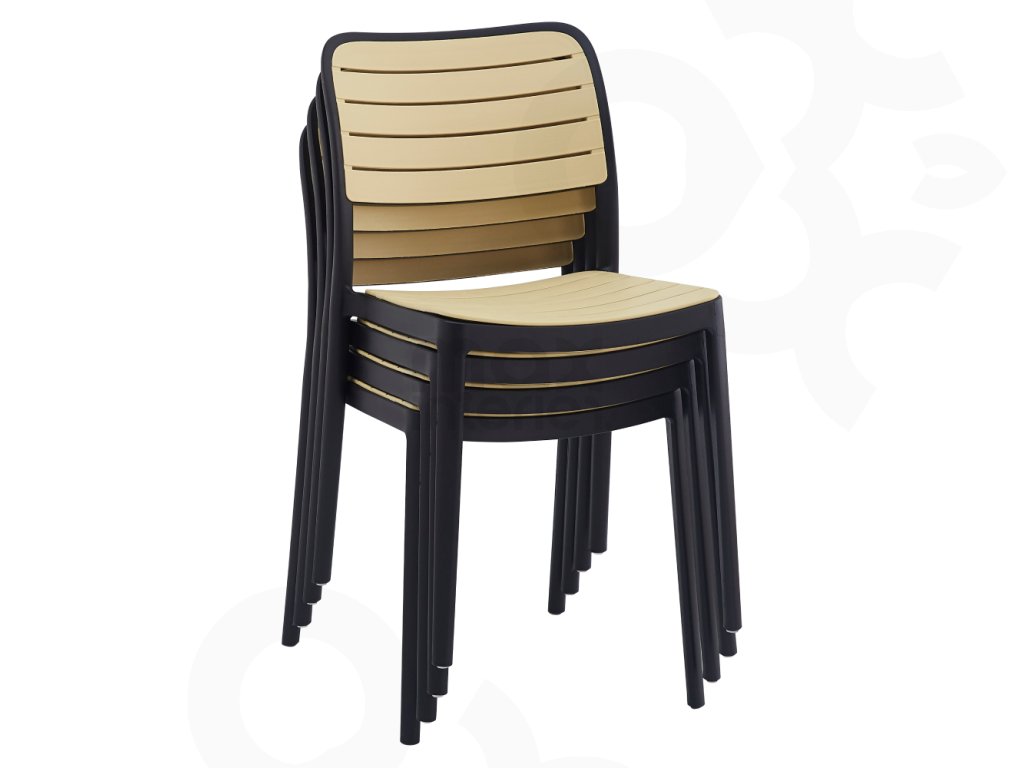 Ergonomicky tvarovaný sed a opěradlo zajišťují příjemné pohodlí při sezení. Výška sedu 45 cm, hloubka sedu 43 cm a šířka sedu 44 cm vytvářejí vyvážený prostor pro komfortní posezení doma, na terase i v kavárně. Velkou výhodou je stohovatelnost, díky které snadno ušetříte místo při uskladnění.